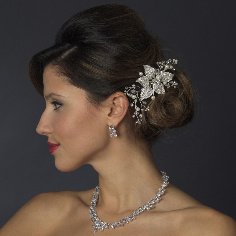 This Gorgeous Pearl and Rhinestone Bridal Comb is a beautiful floral vine bridal comb accented with diamond white faux pearls, Swarovski crystals and rhinestone-encrusted leaves. Stunningly eye catching, this gorgeous sparkling pearl and rhinestone bridal comb is a beautiful modern hair accessory to include into the bride’s or bridesmaids’ hairstyles, for a glistening and glamorous touch. The silver-plated piece is adorned with breathtaking components of Swarovski crystals and rhinestones. Soft and romantic yet bold and dramatic, you will look unforgettable on your special day. Your elegant wedding celebration will not be complete without this gorgeous sparkling accessory!