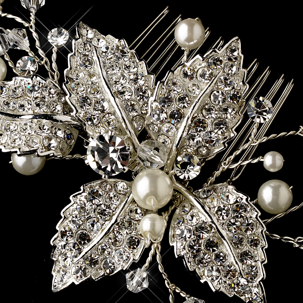 The flower adornment measures 4-1/2″ across and 2-1/2″ in height. This Gorgeous Rhinestone & Pearl Vine Bridal Comb is the perfect combination of romance and sparkle.