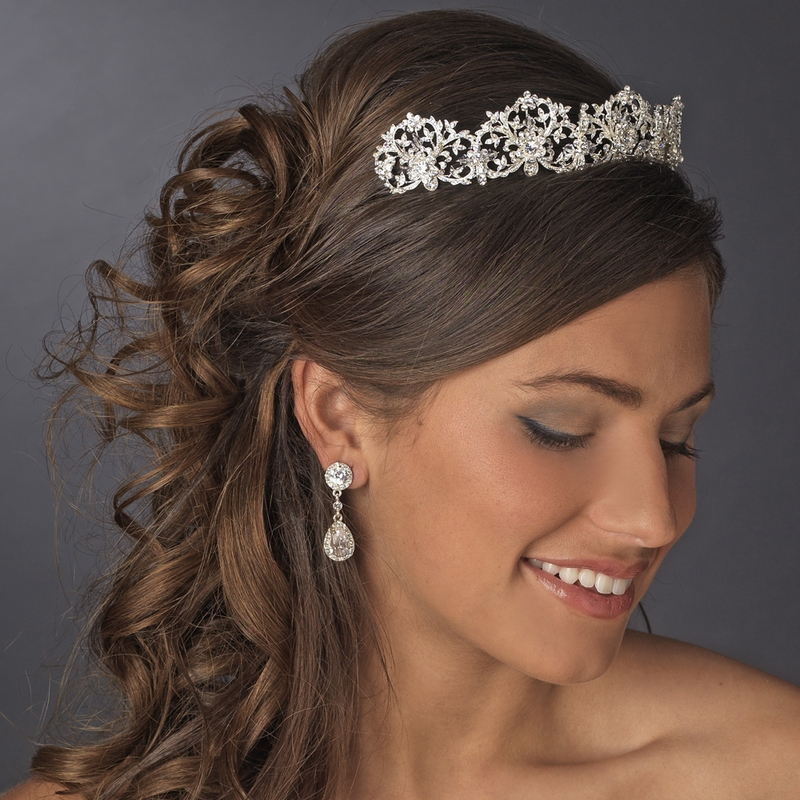 The Exquisite Royal Crystal Bridal Tiara is a glamorous royal bridal tiara that will add a touch of glam and elegance to your special occasion. Featuring gorgeous silver-plating and encrusted with sparkling rhinestones, this tiara is guaranteed to capture the light and deliver a breathtaking radiant sparkle that family, friends, and guests will fall in love with. An amazing design. The design extends 9″ long by 1-1/2″ wide on a 15″ band with end loops that fasten the tiara securely and comfortably into the hair with bobby pins.