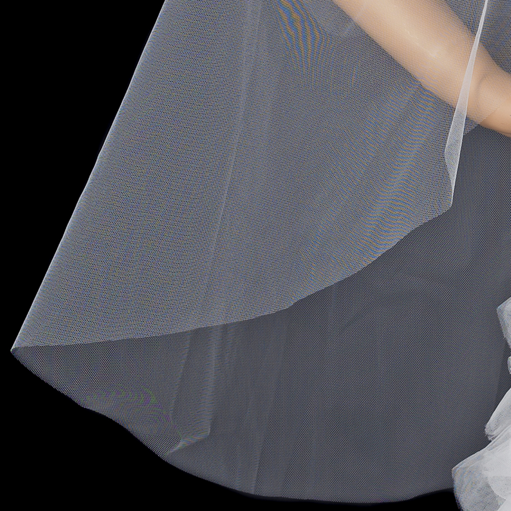 The 2-Tier Waltz Length Cut Edge Veil is an elegant and beautiful 2-tier waltz length bridal wedding veil. The first tier measures 30″ long and the second tier measures 42″ long.