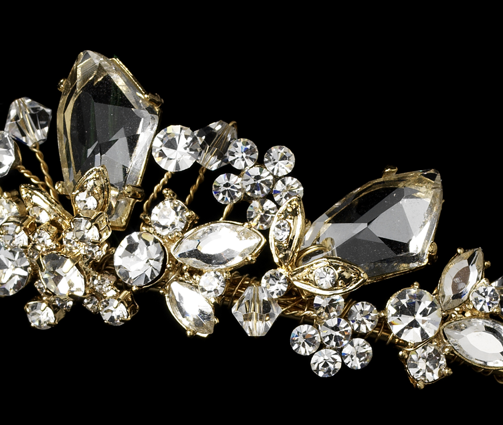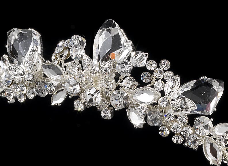 Stunning, the Vintage-Inspired Swarovski Bridal Tiara is a modern tiara that’s an updated version of the royal classic. Beautiful geometric Swarovski crystals and rhinestones sparkle throughout, creating a modern dazzling shine. The crystals form a stunning floral design adorned with clusters and scattered rhinestones. Perfect for your modern wedding. The Swarovski bridal tiara measures approximately 1″ high with a loop at each end of the band to help fasten securely and comfortably into hair.