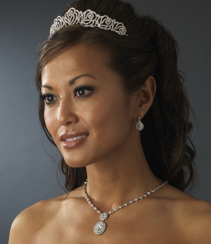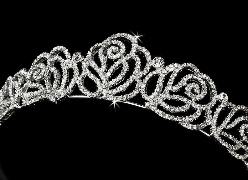The ornamented floral design of the Octavie Rose Bridal Tiara measures 1-1/2″ tall and 5-1/2″ wide. Pin loops are located at each end of the tiara to help secure it into your hair with bobby pins.  This antique silver rose bridal tiara coordinates with any color wedding dress or formal ensemble and adds a whimsical, floral flourish.