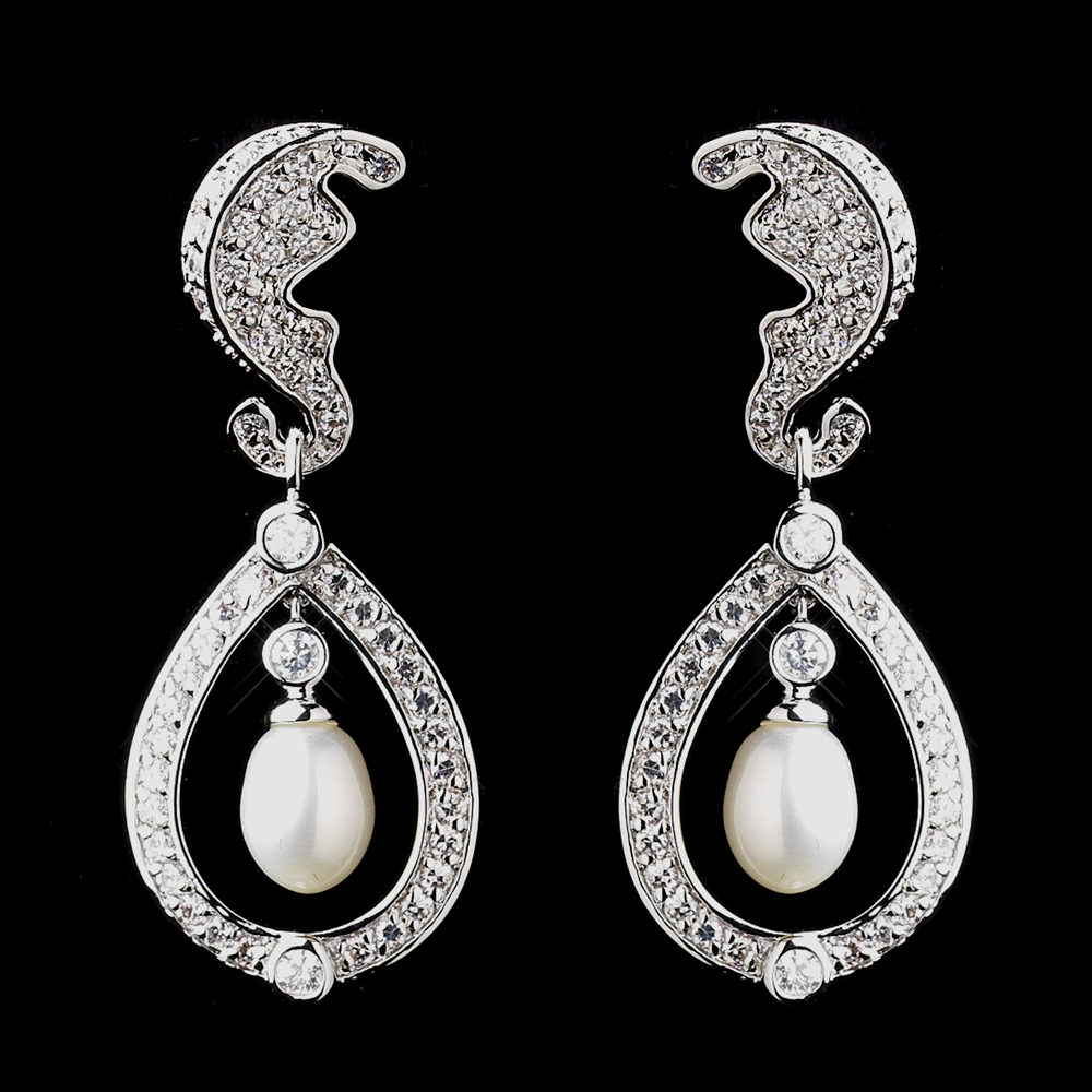 With a touch of silver-screen glamour, the Audrey Royal Wedding Earrings are alight with clear Cubic Zirconium stones and a drop ivory pearl. These sinuous Kate Middleton-inspired earrings featuring an antique silver design are stunning and perfect for any royal bride and will be sure to bring some regal elegance to your wedding day!
