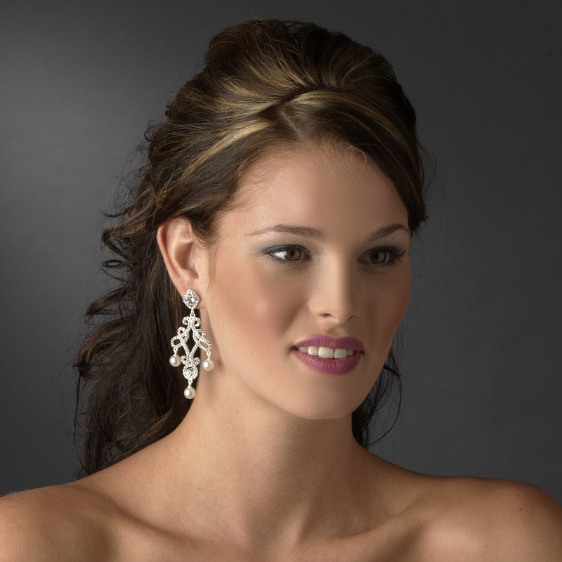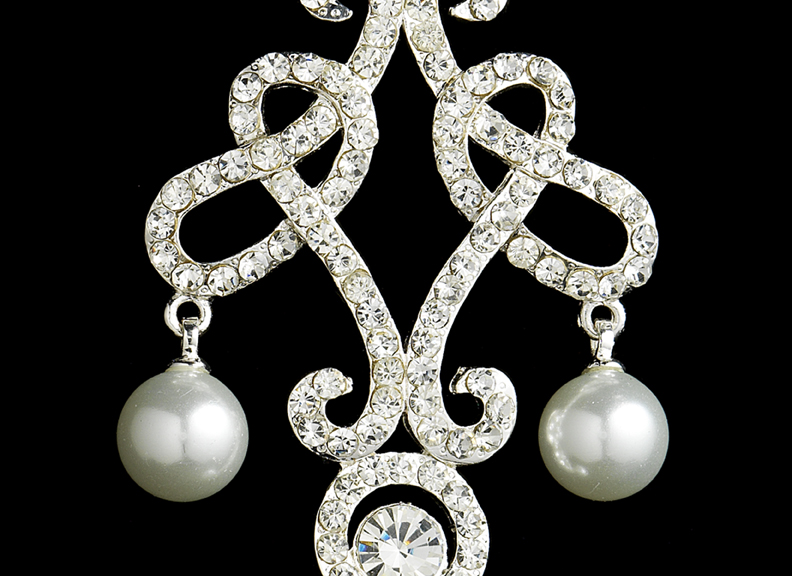 The Majestic Austrian Crystal & Pearl Chandelier Earrings measure an amazing 3-3/4″ long and 1-1/4″ wide. The earrings coordinate with any color wedding dress or formal gown. They come available in Silver White.