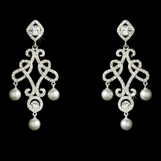 Glitzy and glamorous, the Majestic Austrian Crystal & Pearl Chandelier Earrings are encrusted with sparkling, clear rhinestone crystals and feature lustrous faux pearls in a beautiful ornate design. The earrings are a stunning addition to your vintage-inspired or modern wedding. These spectacular pearl chandelier earrings are also perfect for a prom, gala event, and many other special occasions.